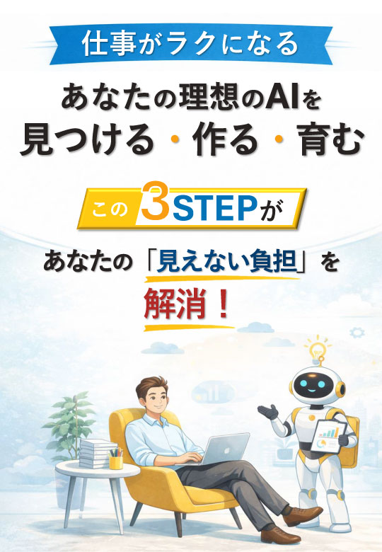 「AIを使うだけ」の人は、もう損をしています。 これからの格差は、能力や情報量ではなく「どう設計し、育てるか」で決まります。自分専用にカスタマイズされたAIは、単なる道具を超え、あなたの時間を生み出す「最強の分身」へと進化します。 今、AIを設計するスキルに投資することは、一生分の「ゆとり」を買うのと同じ。あなたの働き方を、時間の使い方を、そして未来を。賢い選択で、今すぐ劇的に変えてみませんか?